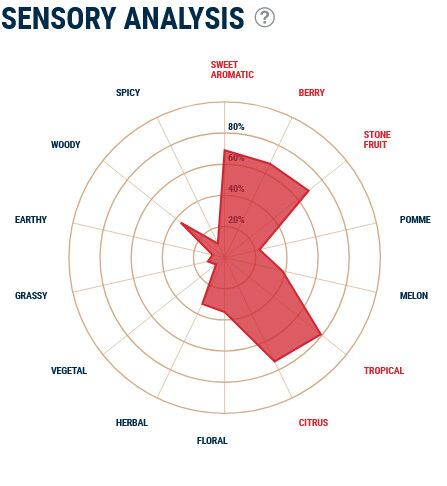 アロマ: ベリー, バブルガム, シトラス, ストーンフルーツ, トロピカル