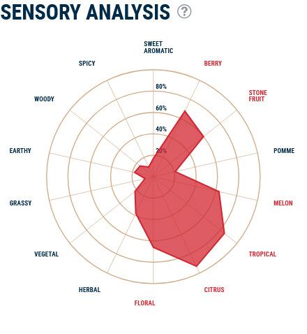 アロマ: バブルガム, シトラス, ストーンフルーツ, トロピカル, ウッディ